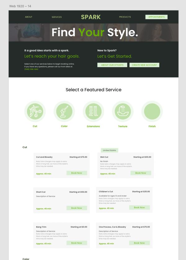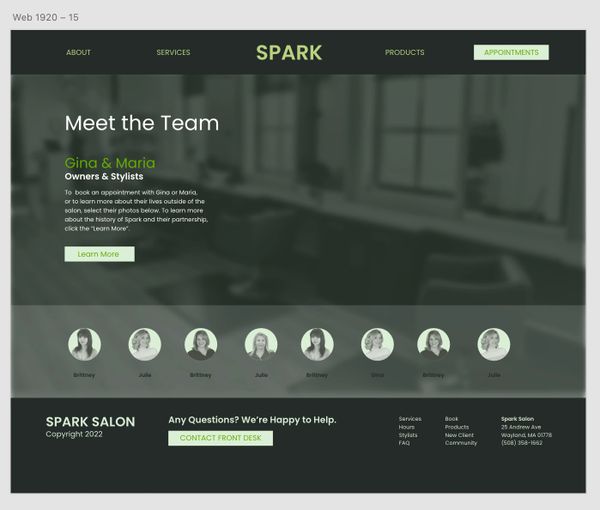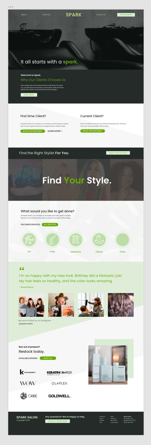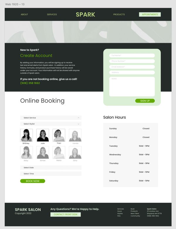 While working as a a part-time receptionist at the salon Spark Salon in Wayland, MA, I was given the opportunity to help the new owners establish an online presence with a website!
